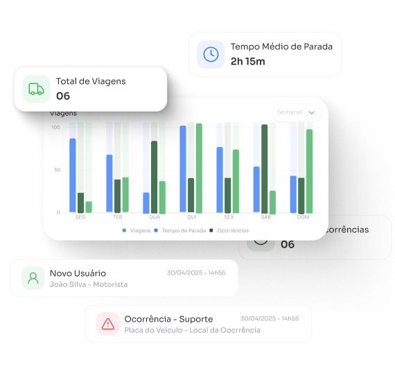 Acompanhe viagens, status de entrega, ocorrências e desvios em tempo real, garantindo previsibilidade, segurança e transparência em cada etapa do transporte.
